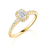 20分-49克拉祖母綠型黃K金光環婚戒鑽戒